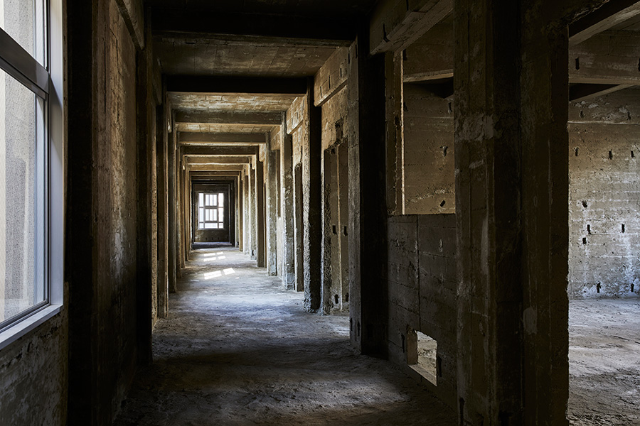 壁や天井は、すべて剥がされ、長らく立入禁止の状態であった。当時の息づかいや痕跡がそのままに残されていた。