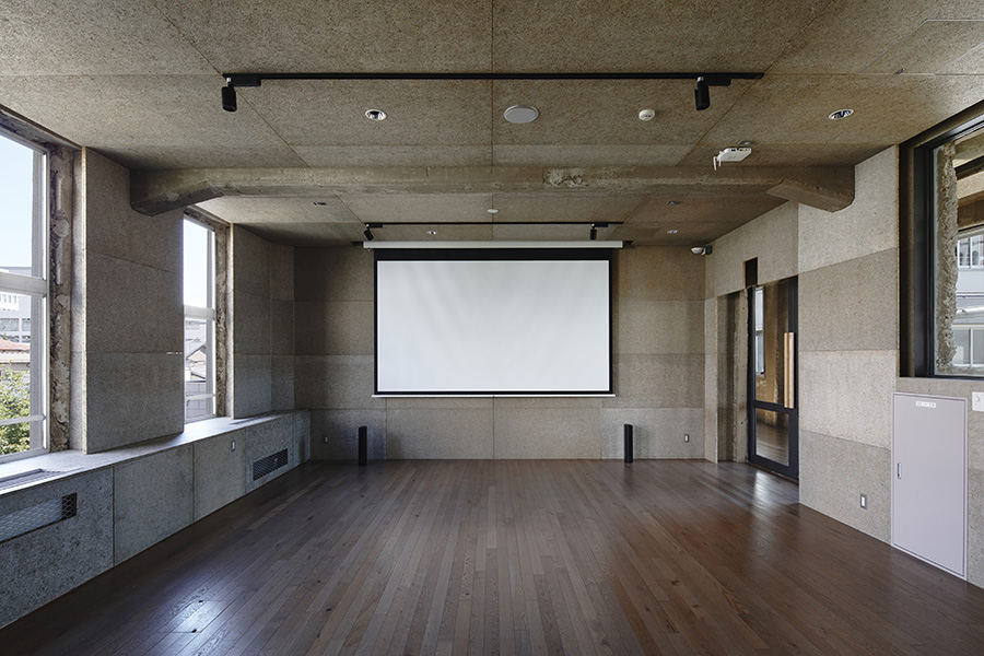 広々とした防音仕様のレンタルスペースです。大型のスクリーンと高出力スピーカー、4K対応のプロジェクターを完備したスペースです。映画の上映会や音楽会・撮影などの制作活動に加え、静かな空間での展示や大人数での会議などでもご利用いただけます。