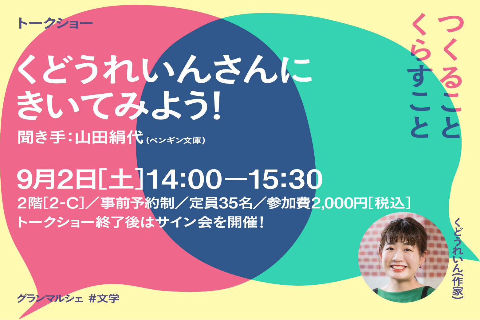 【グランマルシェ #文学】トークショー/くどうれいんさんにきいてみよう! ○8/1より予約受付開始
