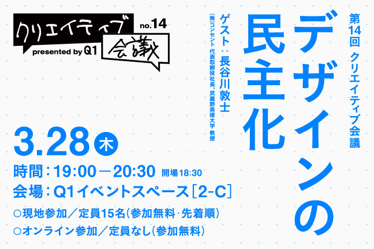 Q1が目指す「クリエイティブと産業を暮らしで結び、それらを山形の持続可能な社会へ還元する」ための具体的な方法論や事業の可能性をテーマに、先進的な活躍をされているクリエイター/アーティスト等のゲストとQ1プロデューサー/ディレクター陣がディスカッションする公開型の企画会議です。