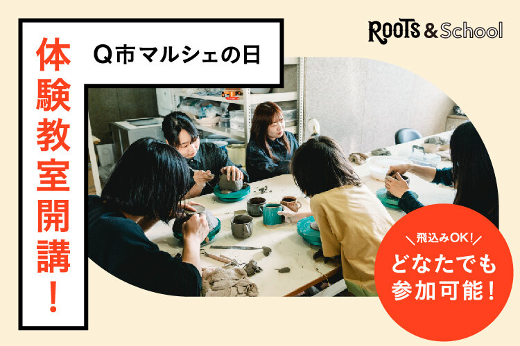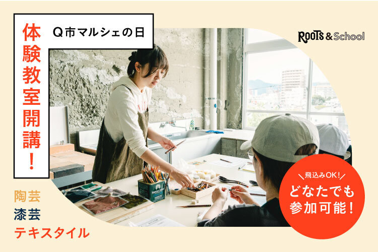 「ROOTS & School」は、やまがたクリエイティブシティセンターQ1の3階にあるギャラリー「ROOTS & Technique」から生まれた、クラフトのルーツと技術を学ぶ学校です。「ROOTS & Technique」(=源流と技術)という言葉には、「すべての物事には必ずそれが生まれた歴史や経緯があり、それは技術によって形を変え今に至る。その先の未来までまた形を変えながら残り続ける」という意味が込められています。「ROOTS & School」では、その意味を受け継ぎながら、Q1 3階のアーティストスタジオに入居する作家を講師に迎え、「陶芸」「漆芸」「染色」の3教室を常設し、市民の皆さまのクリエイションを産み出す技術を提供。また、ゲスト講師による特別授業も定期的に開講しています。