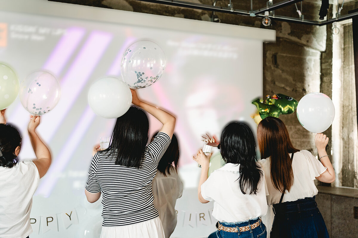IHコンロが備え付けられた簡易キッチンと、大型スクリーンが完備されたマルチスペースです。映像と料理が同時に楽しめるこの空間は、ワークショップや各種説明会、イベント開催やプライベートパーティなど、さまざまな用途でのご利用が可能です。