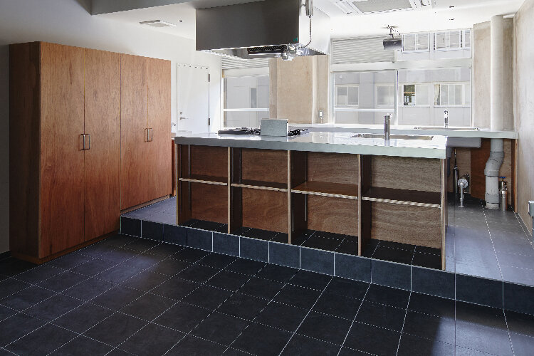 3口コンロ2箇所とスチームオーブンなどを備えるキッチンスペースです。このダイナミックなキッチンは、料理人を招待してのイベント開催やポップアップ出店などに最適です。また、普段とは違ったパーティ会場をお探しの方々にもおすすめです。