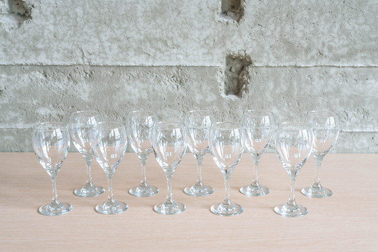 ワイングラス:1セット10脚で550円[税込]/5セットまで